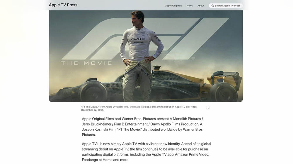 蘋果宣布,原本的串流服務 Apple TV+ 將正式更名為「Apple TV」。此消息藏在官方新聞稿中,宣佈《F1 The Movie》將於 12 月 12 日在平台首播時順帶提及:「Apple TV+ 現已更名為 Apple TV」。