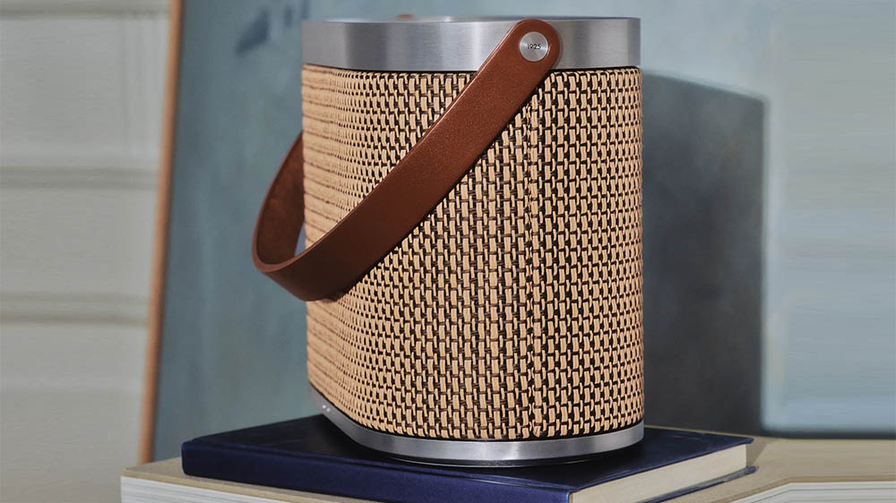 經典無線喇叭 Beosound A5 以 Century Weave 呈現,採用米色與栗棕色方格編織布料,呼應 1950 年代方格喇叭設計。喇叭擁有 360 度音效、280W 功率,配以刷紋鋁框和皮革提把,並刻有紀念銘文。