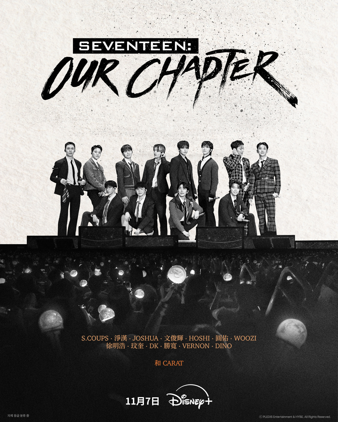 回顧偶像男團 SEVENTEEN 出道十年高山低谷,展望未來動向,四集音樂紀錄片《SEVENTEEN:OUR CHAPTER》Disney+ 獨家上線。