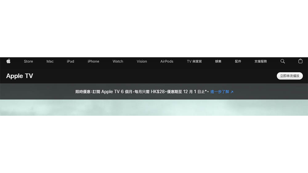 Apple 宣佈旗下串流服務 Apple TV 在Black Friday 期間推出限時優惠,由原價 HK$68下降至每月只需 HK$28。