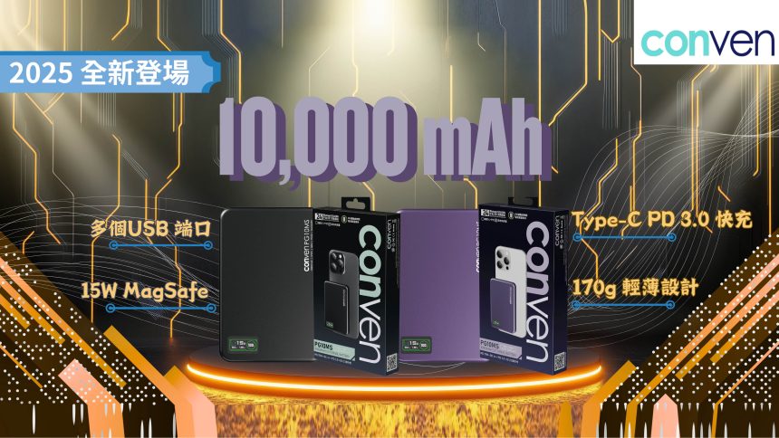 CONVEN PG10MS 10000mAh 外置電池現已發售,2025年11月1至11月30日期間,於網店使用優惠碼 EZONE202510 享有限時預售優惠價 HKD208 (原價:HKD 278)。