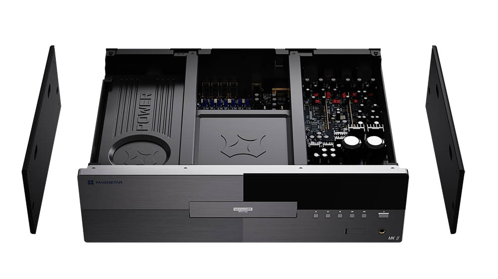 MAGNETAR 推出全新旗艦 4K 藍光/SACD 播放機 UDP900 MKII,象徵碟機皇者正式換代。新機淨重達 15.4 公斤,採用全鋁合金外殼及雙層底盤結構。內部以金屬屏蔽與分艙設計,有效隔離震動與磁場干擾。光碟機架經噴砂塗層強化處理,並加設吸音棉,降低運轉噪音與共振。