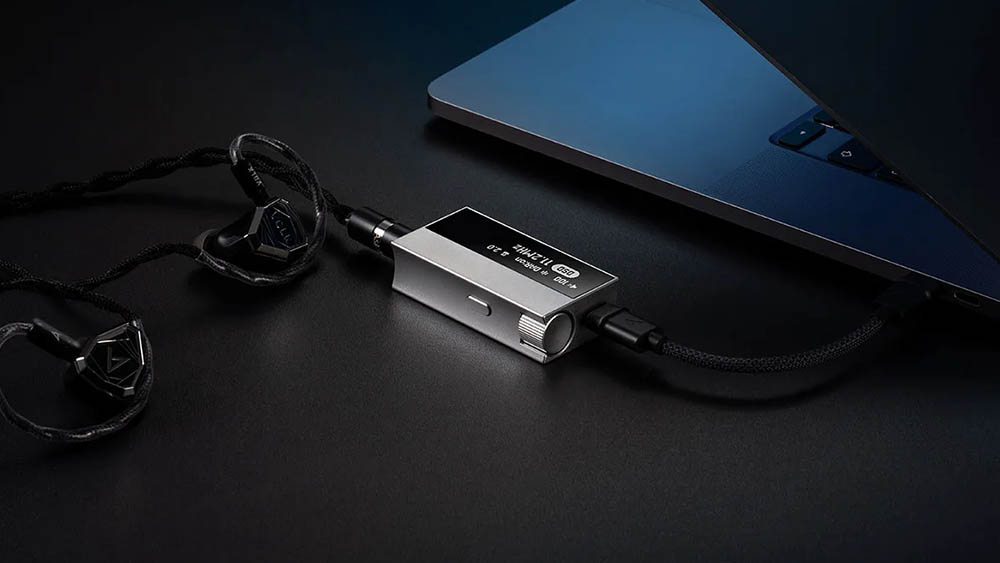 官方指平衡輸出可達 125dB(@1kHz)信噪比,串音 -141dB,THD+N 僅 0.0004%;非平衡輸出則提供 121dB SNR,THD+N 約 0.005%。音量透過 150 級旋轉撥盤調整,相關資訊顯示於 1.62 吋 OLED 屏幕上。