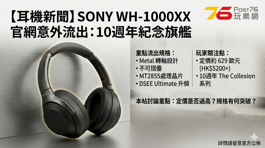 值得留意的是,WH-1000XX 的流出定價為 629 歐元(約港幣 5,200 元起),這比起過往 XM 系列的開售價高出一截。雖然定價較高,但考慮到其「10 週年」與「The Collexion」的特殊系列定位,這款產品顯然是為了滿足對做工與收藏價值有更高要求的進階玩家而設。